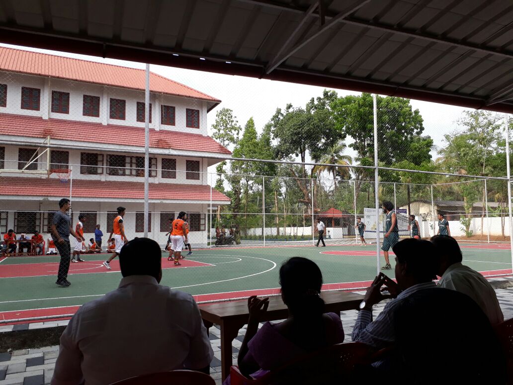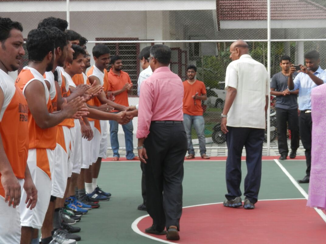 Friendly Basket Ball match between MCMAT and UC College, Alwaye. Capt Verghese Kuruvilla, Treasurer, MCMAT and Dr Anil Thomas Koshy, Director Physical Education of UC College- introduced to MCMAT basket ball team